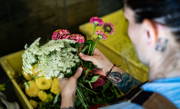 Great cooking isn’t just about making delicious food—it’s about bringing people together and fostering an authentic connection with the local community. Notre Ferme is rooted in the belief of bringing good to everyone, which starts and ends with nurturing my relationships with farmers, clients, and organizations. My partnership with farmers comes down to respect. I work with everyone from a bespoke persimmon farmer to a caviar sourcer to a fungi grower. I bring their products to life in the most honest way possible—doing the bare minimum to each ingredient to preserve its authenticity and integrity. I believe it’s just as much my job to educate my clients about the ingredients I use—where they’re from and how they’re cultivated—as it is to create delicious meals.